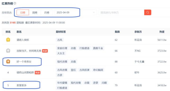 单看“红果热榜”就能发现,免费赛道的剧一旦打响口碑,长尾效应十分明显。3月月榜里排名前三的剧——《好一个乖乖女》《家里家外》《乡下真千金竟是老祖宗》,在今天(4月9日)的日榜里,依然可以分居第三、第五和第九位。